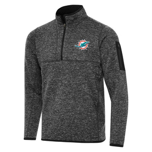 NFL Miami Dolphins Antigua Fortune 1/4 Zip Pullover Jacket - Heather black