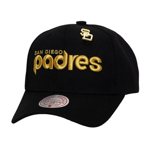 MLB San Diego Padres Mitchell & Ness Pinned Gold Pro Snapback Hat - Black