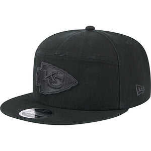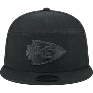 NFL Kansas City Chiefs New Era Black on Black Cotton Canvas 9FIFTY Split Panel Snapback Hat - Black