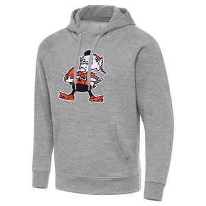 NFL Cleveland Browns Antigua Full Front Throwback Victory Pullover Hoodie - Heather gray