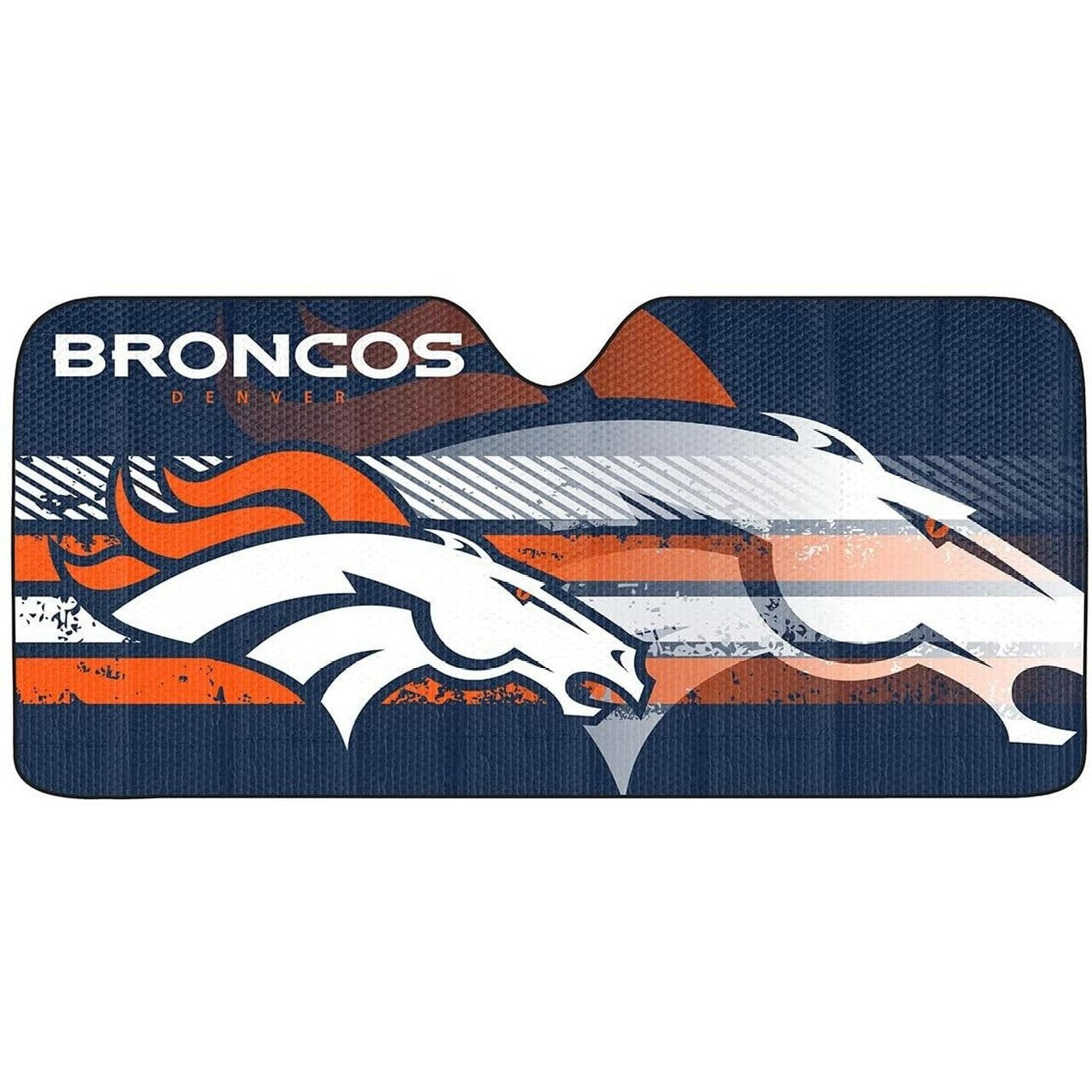 Featuring bold graphics and an accordion design for easy installation, this Denver Broncos shade will keep any car cool in style.