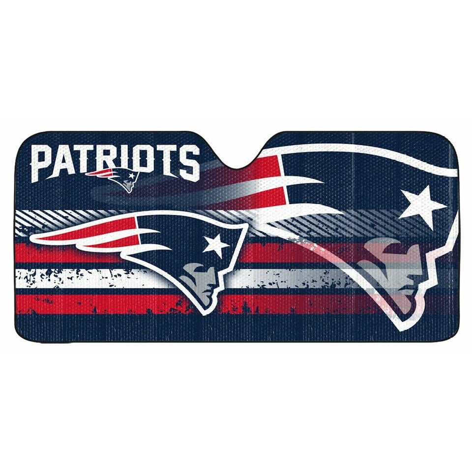 Featuring bold graphics and an accordion design for easy installation, this New England Patriots shade will keep any car cool in style.